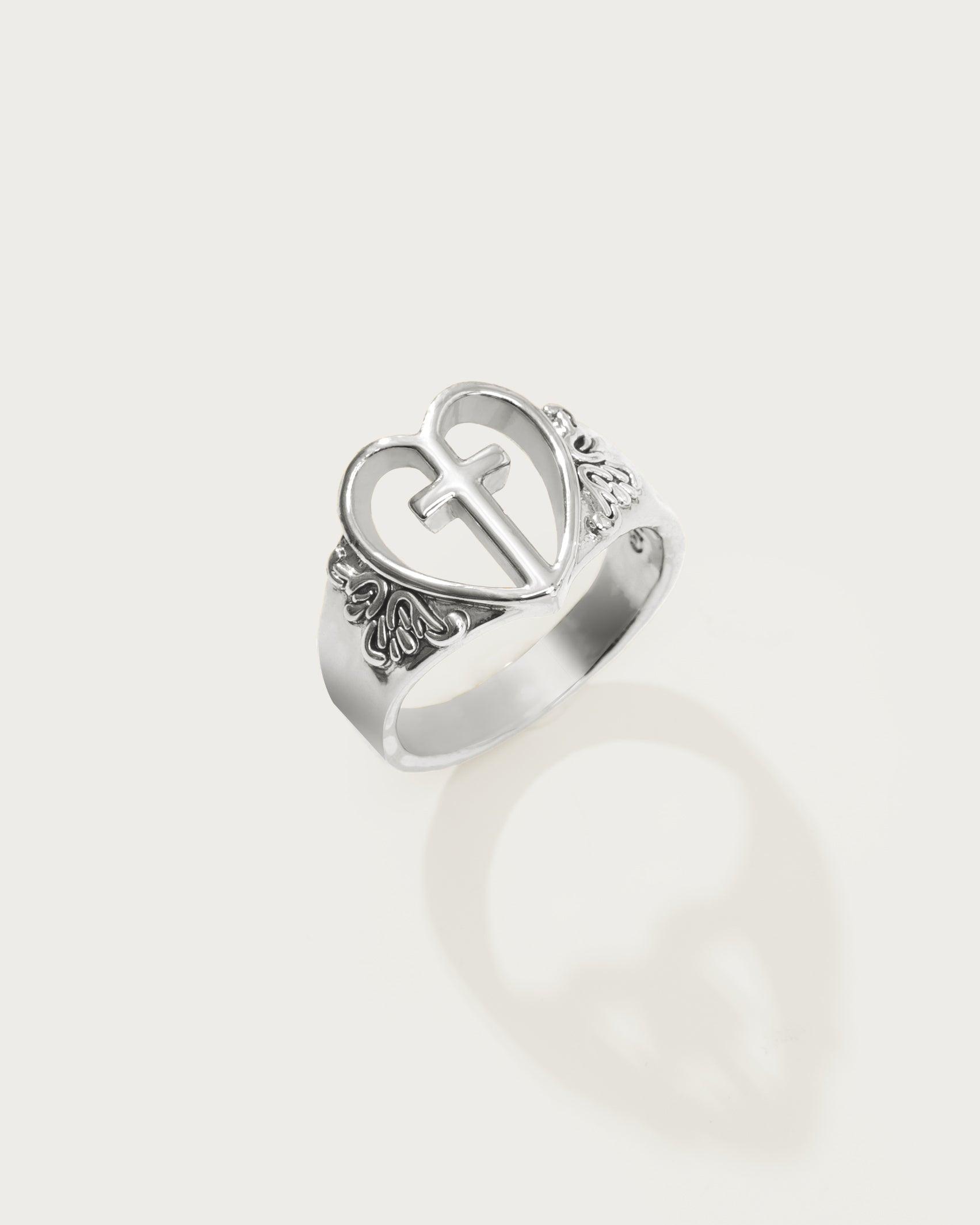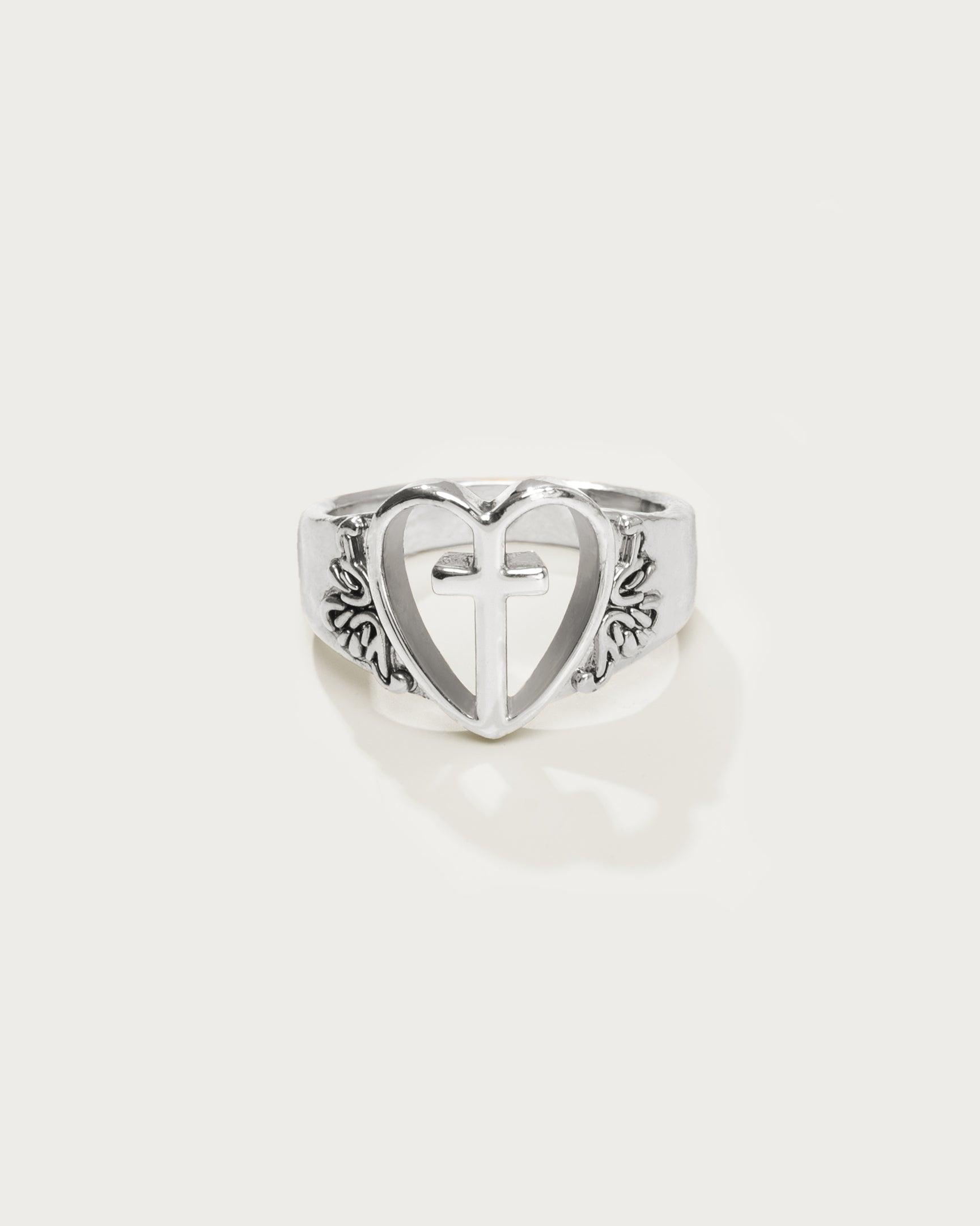Creda Heart Cross Ring in Silver