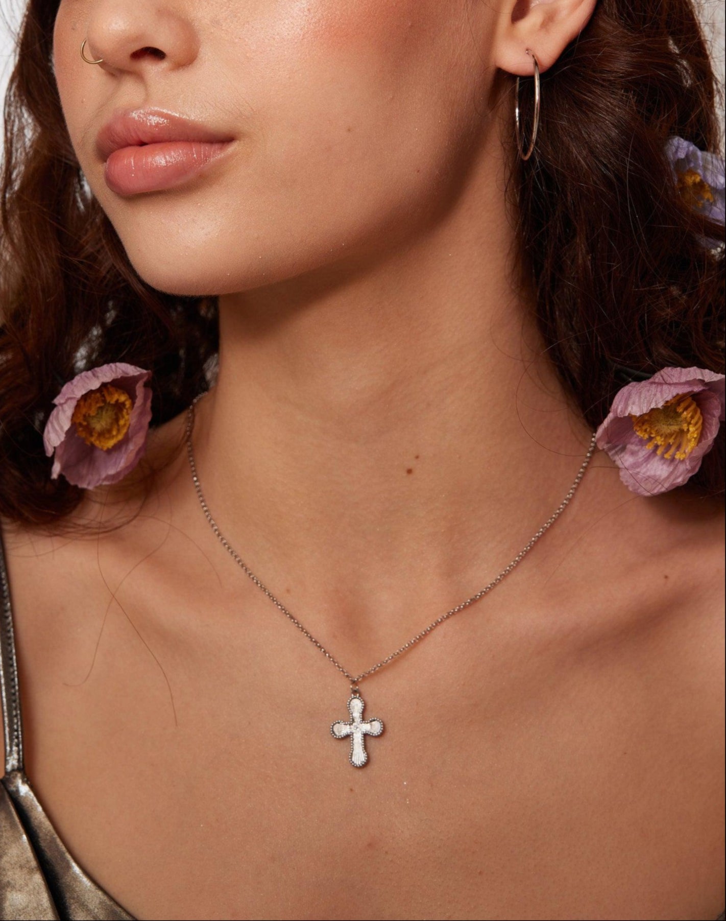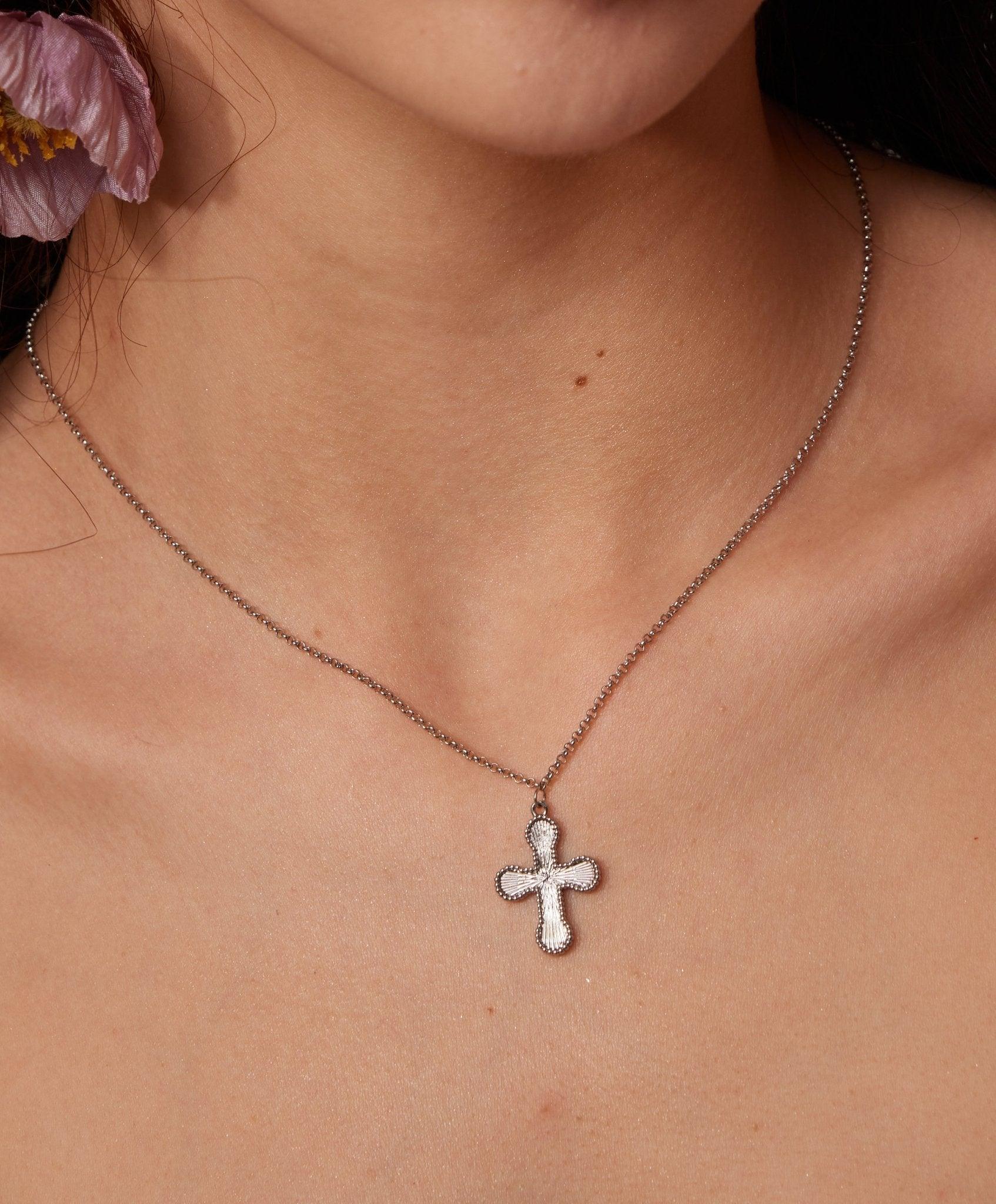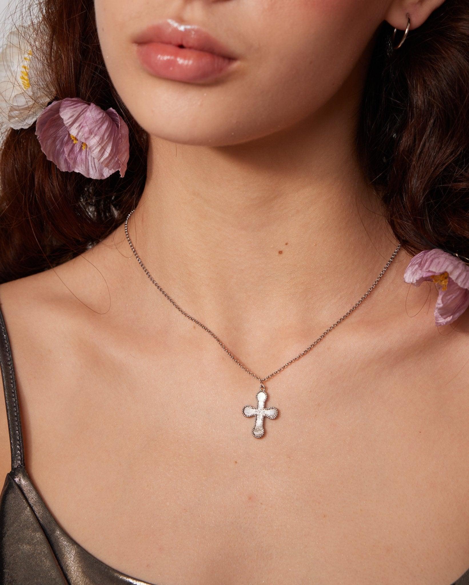 Mini Cross Pendant Necklace in Silver