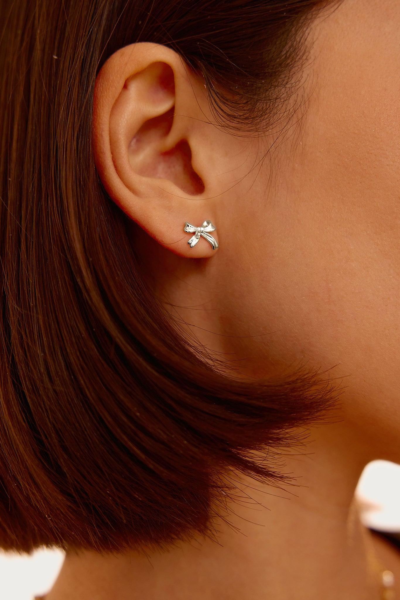 Silver Ribbon Stud Earrings