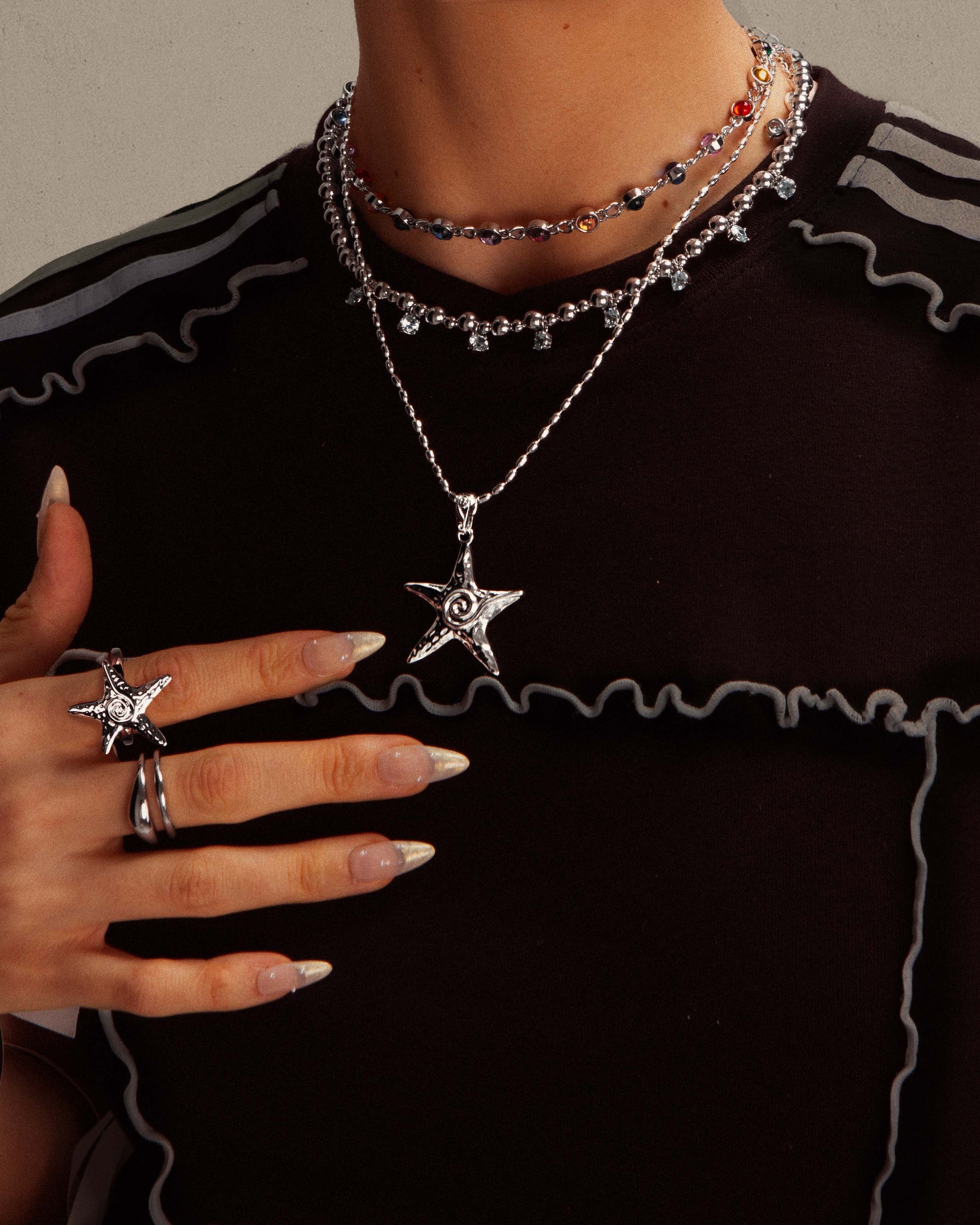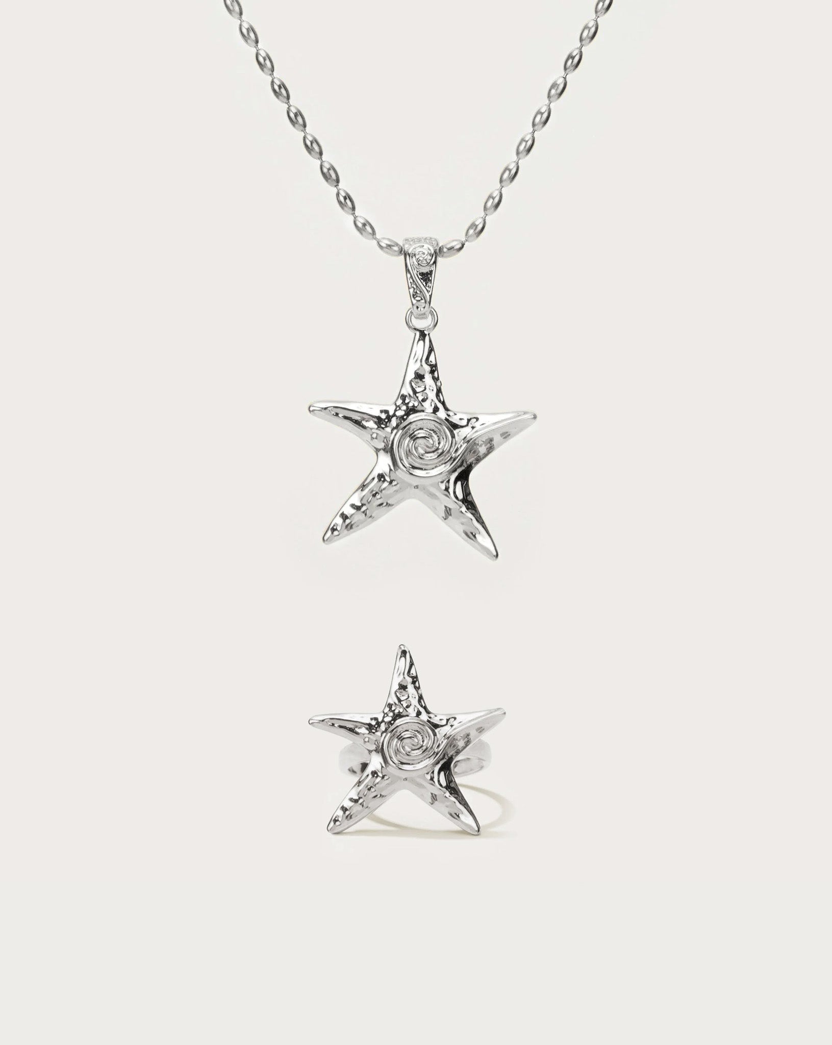 Starfish Necklace & Ring Set in Silver