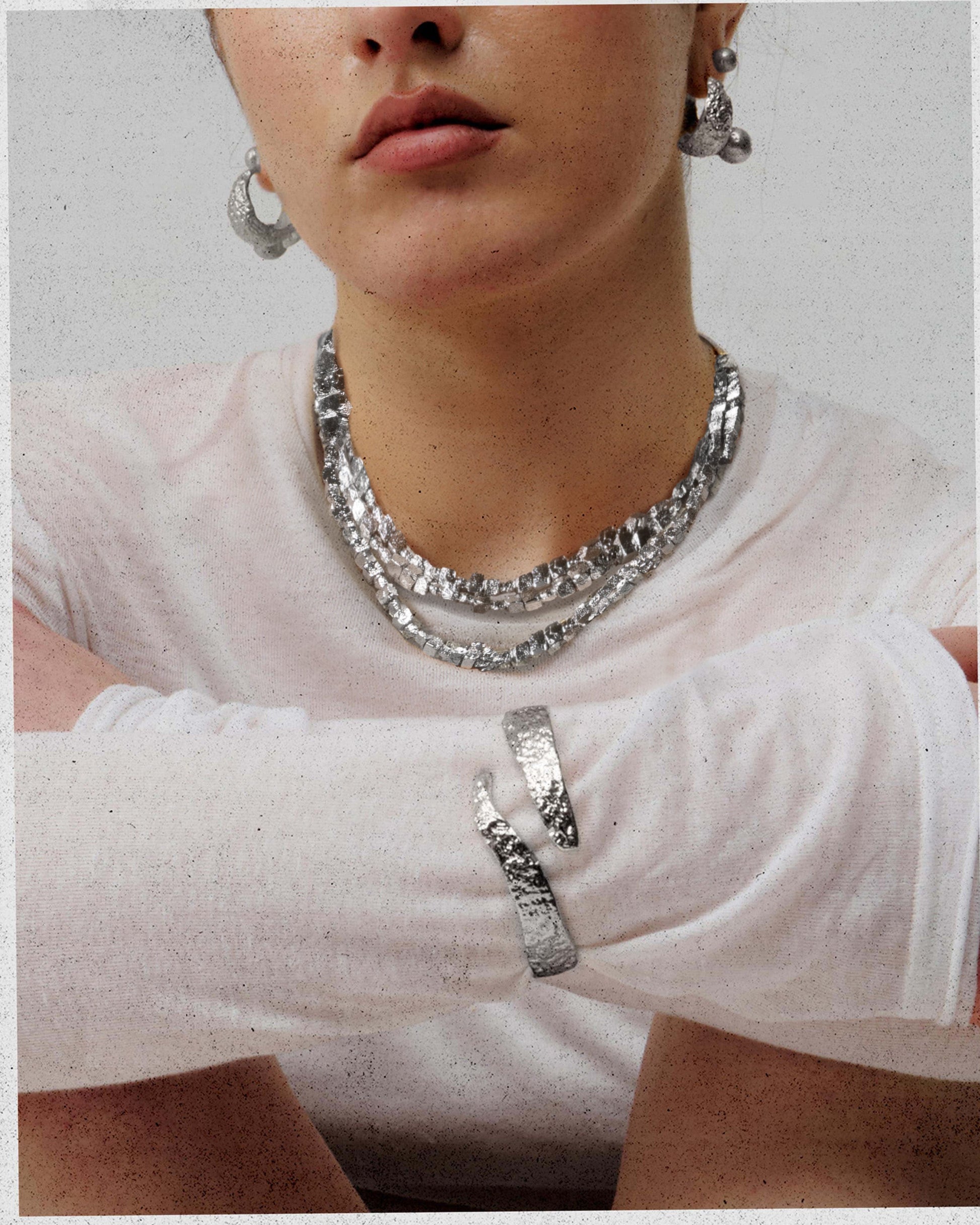 Textured Square Necklace in Silver