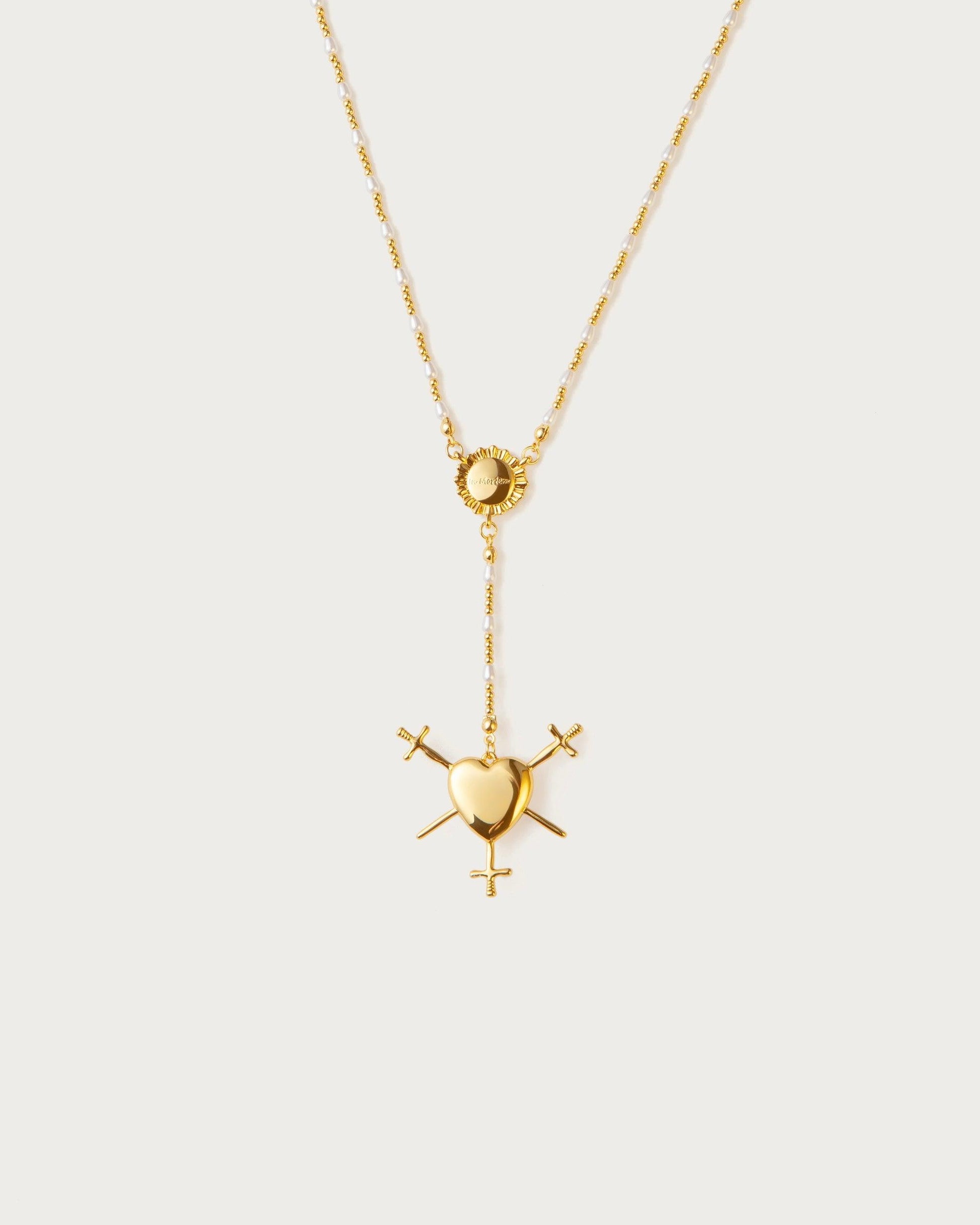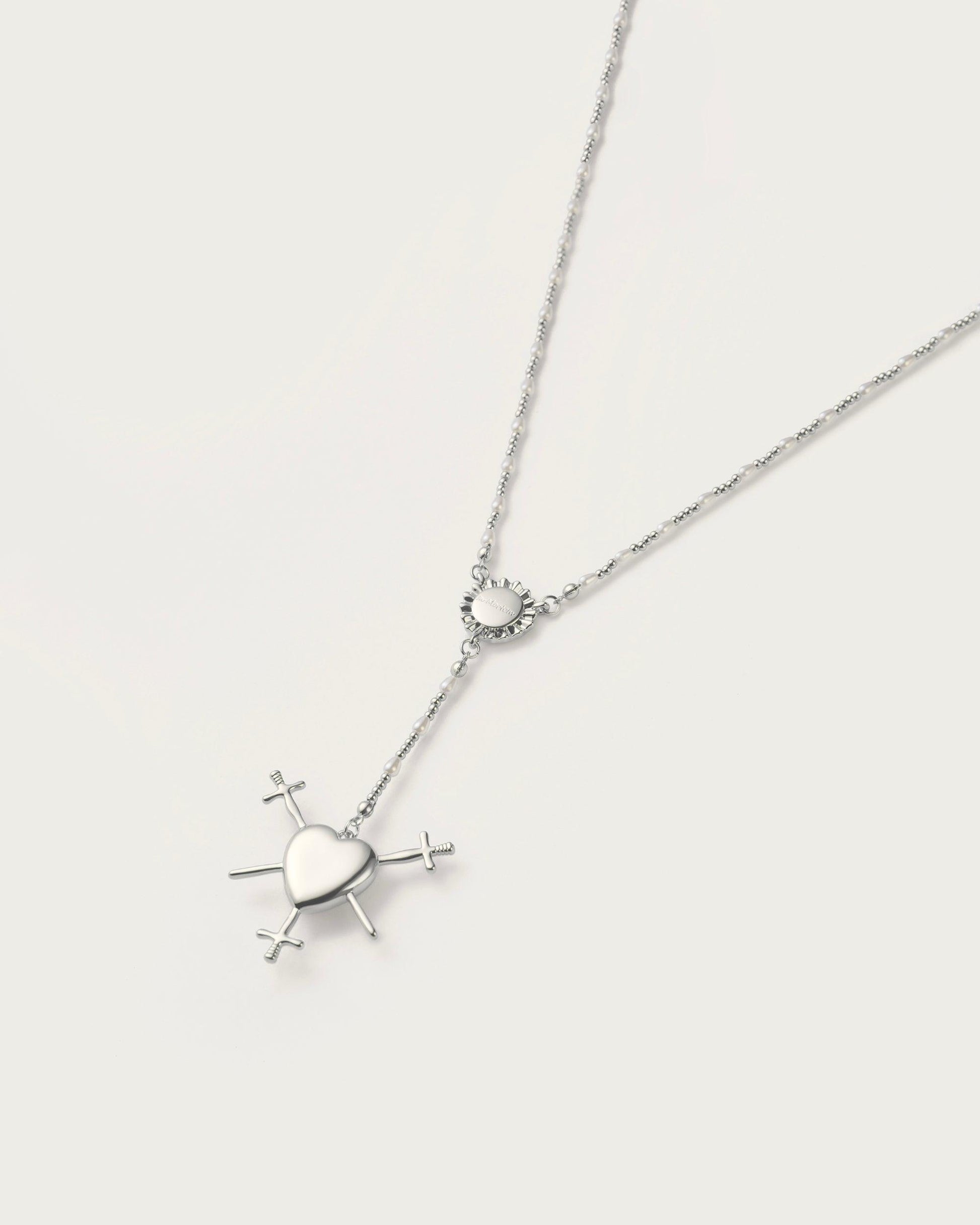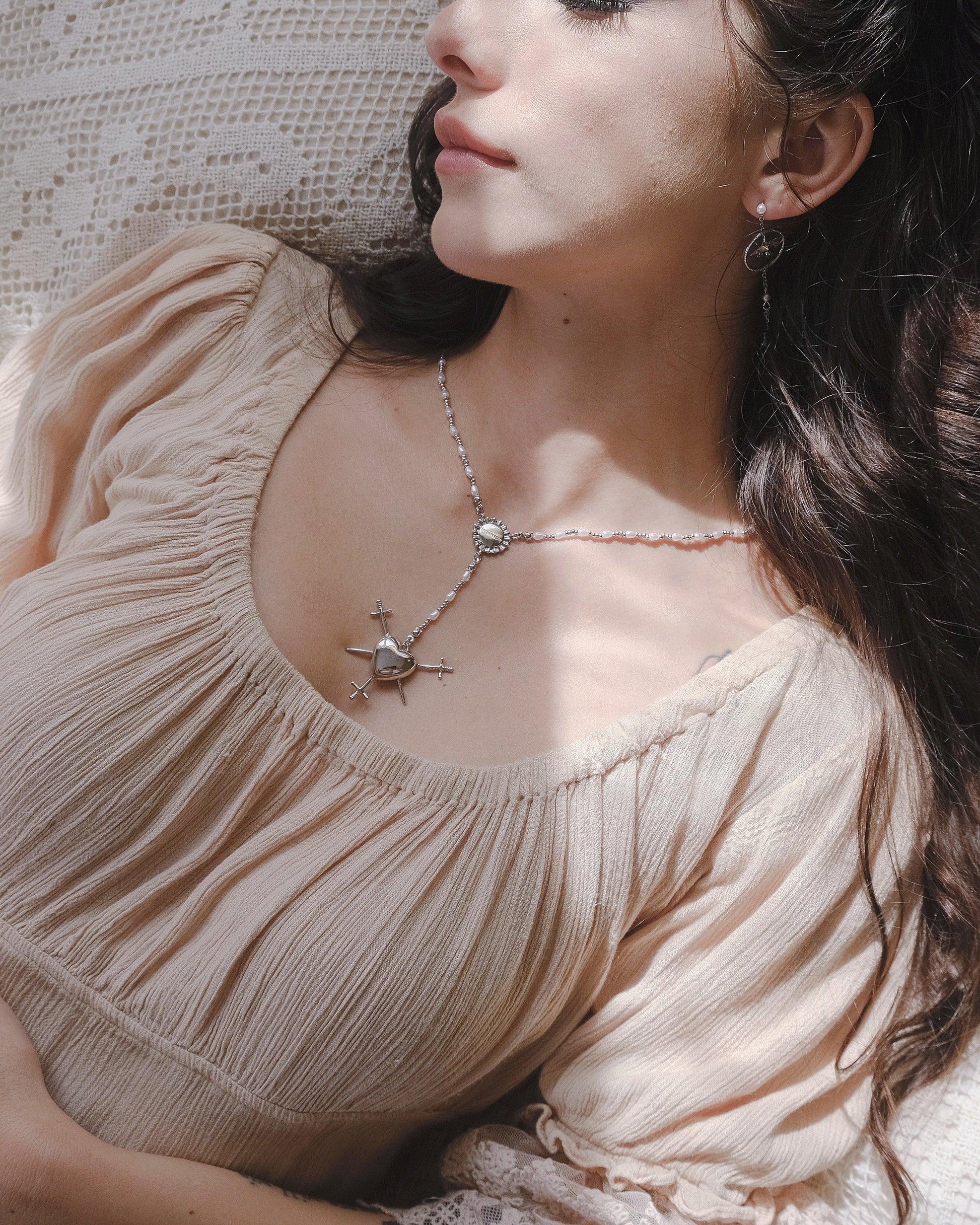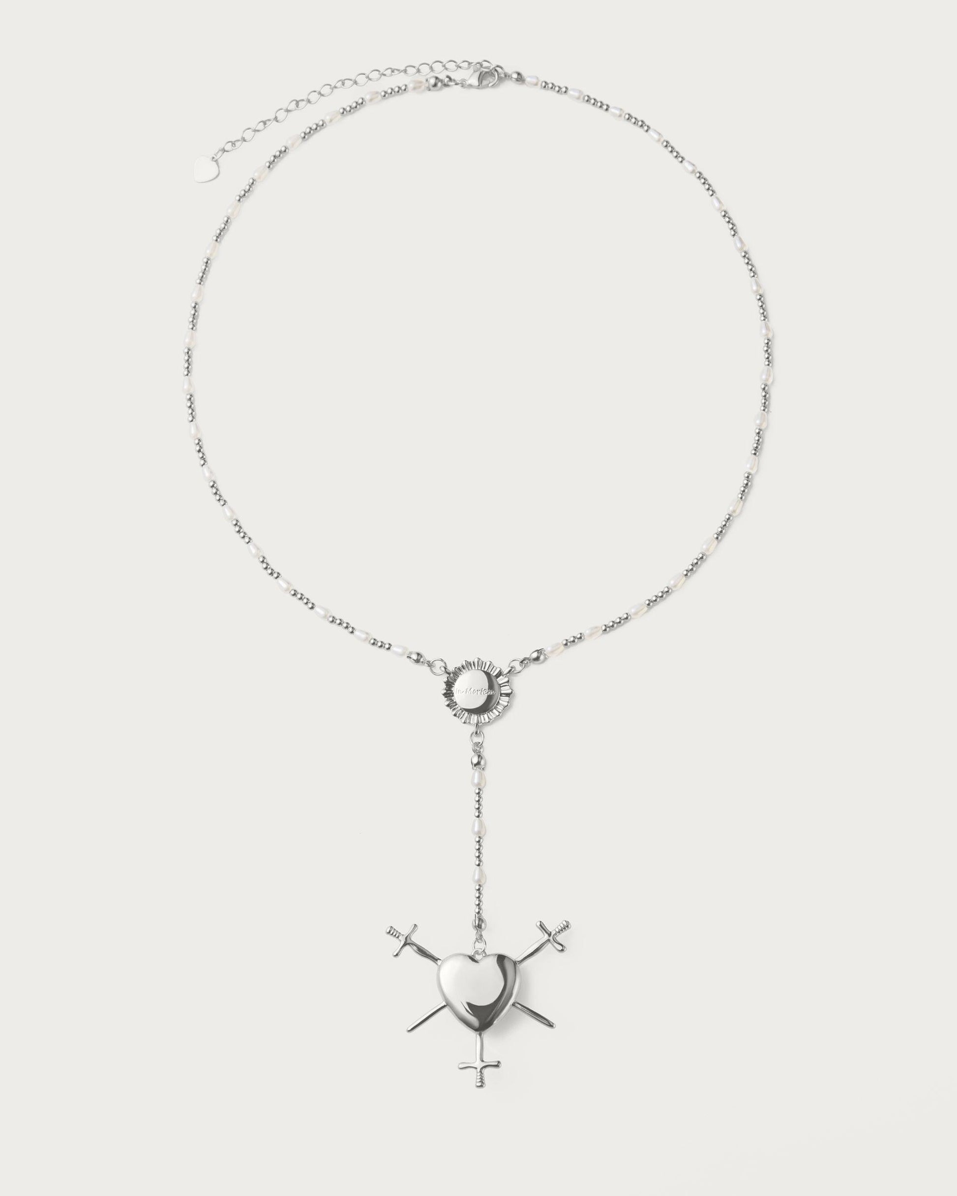 Three of Swords Rosary Necklace in Silver